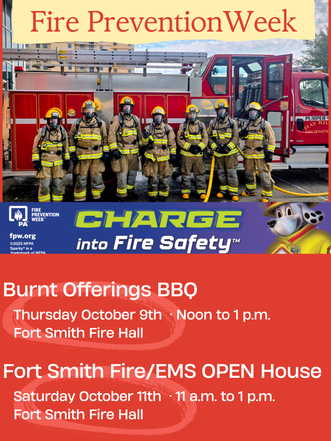 Come enjoy a free community BBQ with the Fort Smith Fire Department! Meet our firefighters, grab a bite to eat, and learn a few quick fire safety tips while you’re here. It’s a great chance to connect with your local fire crew in a relaxed and friendly setting.