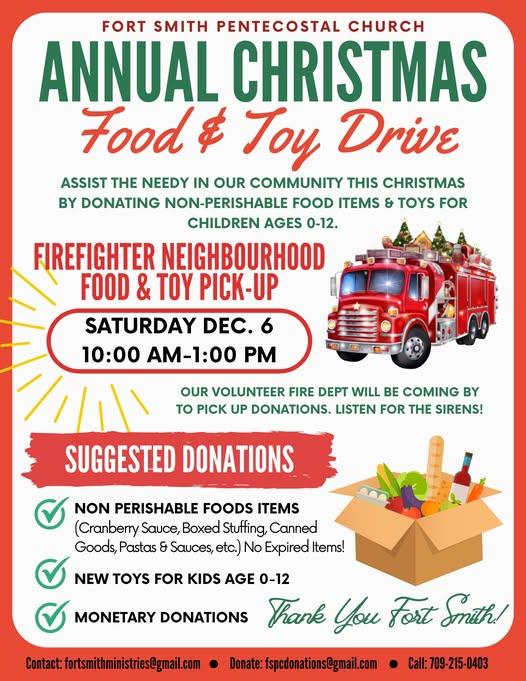 Fort Smith Pentecostal Church and the Fort Smith Volunteer Fire Department are teaming up to support families in our community this holiday season.