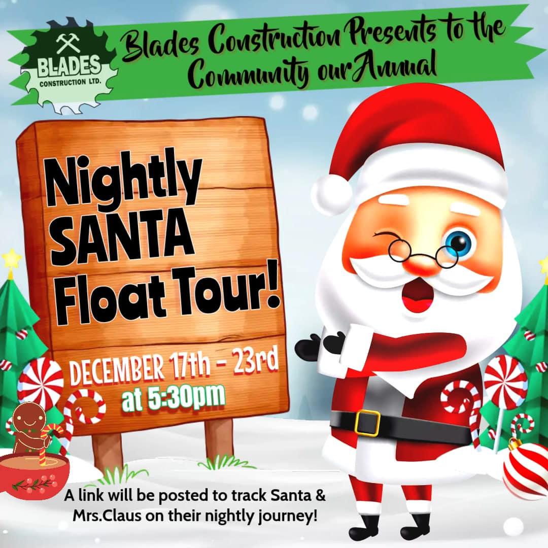 Dec 17 2024 Dec 18 2024 Dec 19 2024 Dec 20 2024 Dec 21 2024 Dec 22 2024 Dec 23 2024 Dec 24 2024 View More Type Community Event Sponsored by Blade Construction, the Nightly Santa Float is a staple of the Fort Smith Holidays.Listen for the music as Santa & Ms Claus visit your neighborhood to spread some holiday cheer!