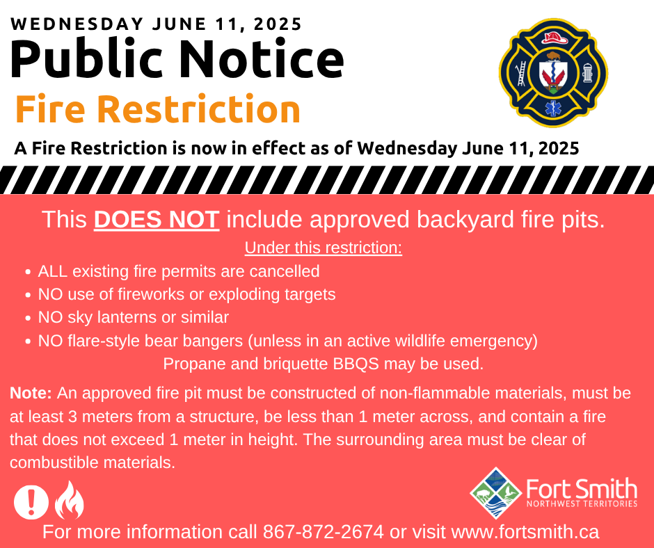 The Town of Fort Smith has lifted the full fire ban. A fire restriction is now in place.