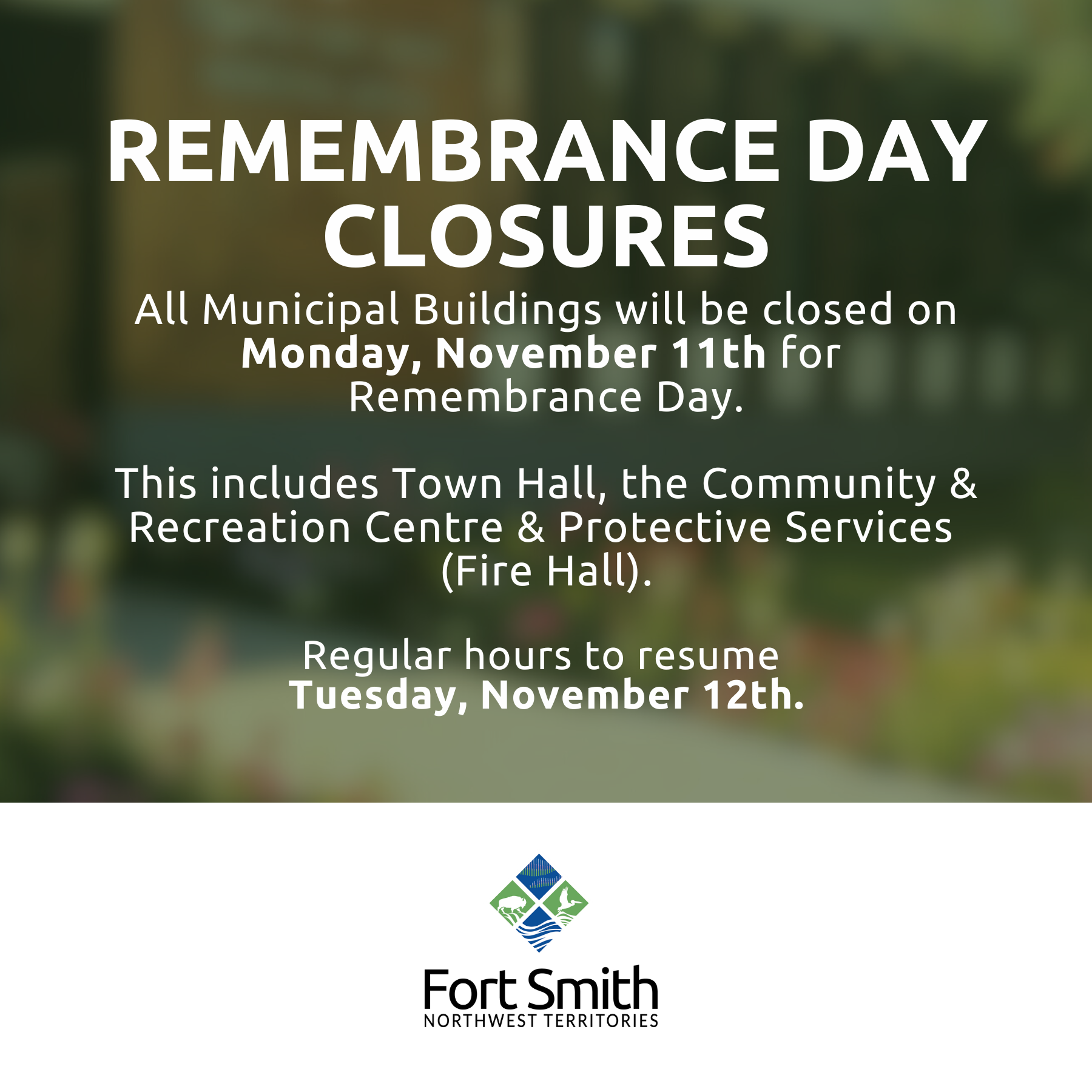 All Municipal Buildings will be closed on Monday, November 11th for